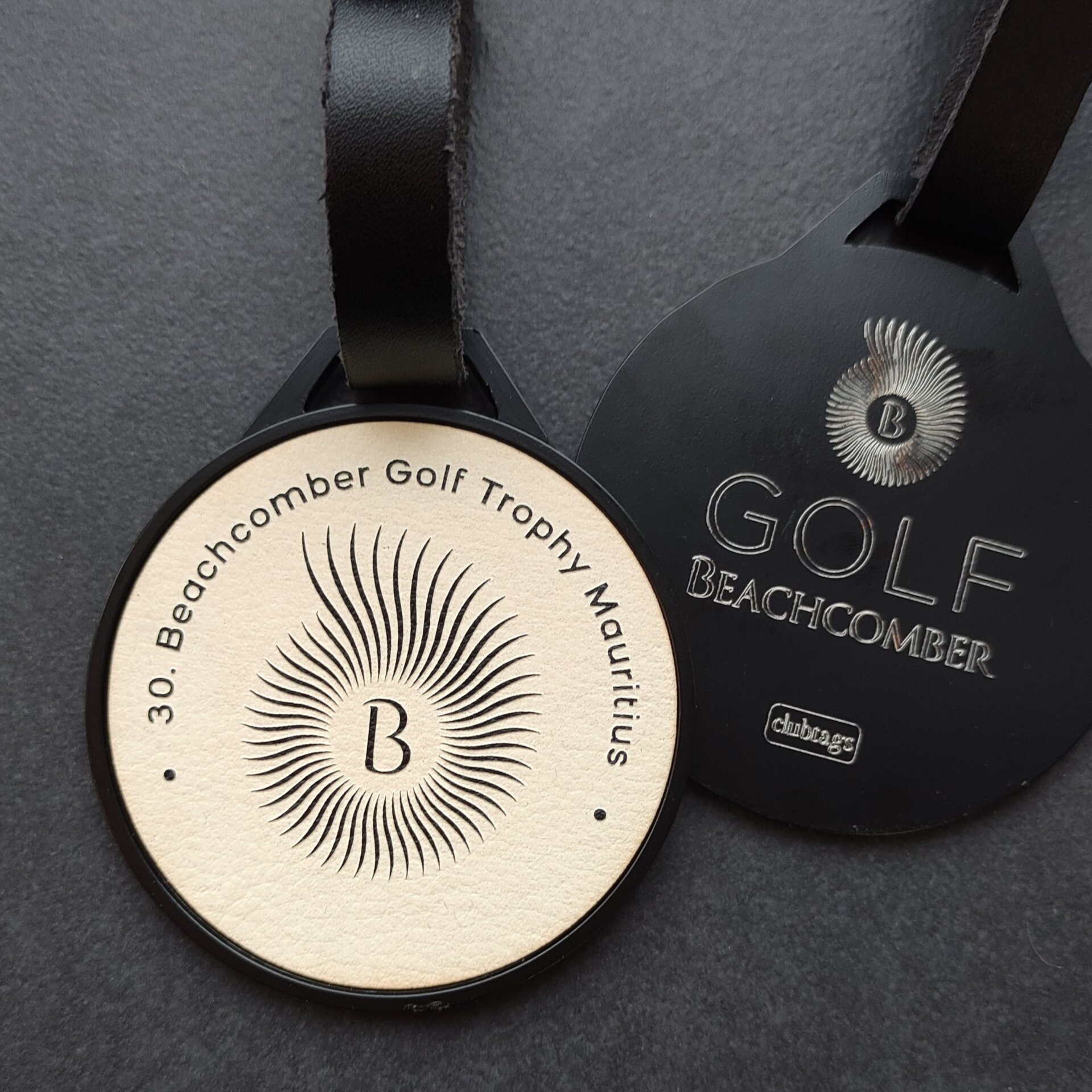 Die LEATHER Line Bagtags von clubtags sind sehr stylische Golftaschenanhänger aus schwarzem Metallguss mit lasergraviertem Kunstleder.