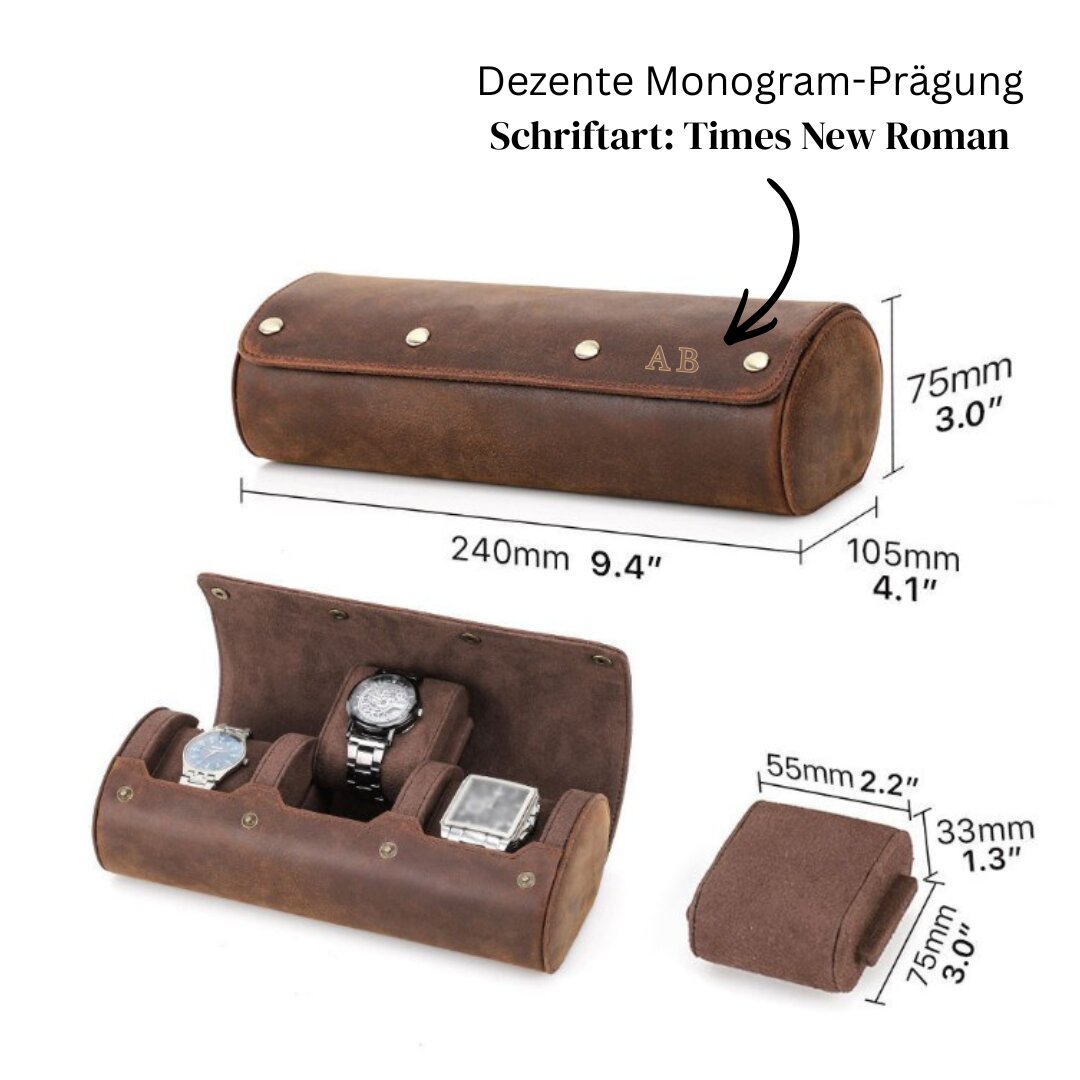 Du suchst ein einzigartiges Geschenk für einen Liebhaber schöner Uhren? Unser Watch Travel Cover mit Monogram-Prägung ist ein super persönliches und stilvolles Geschenk.