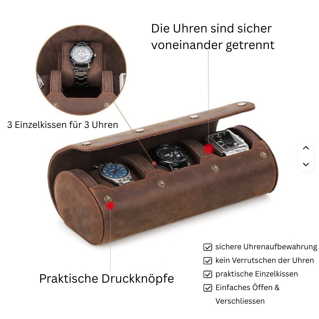 Perfekte Funktionalität: Die Uhrenrolle bietet Platz für 3 Armbanduhren.